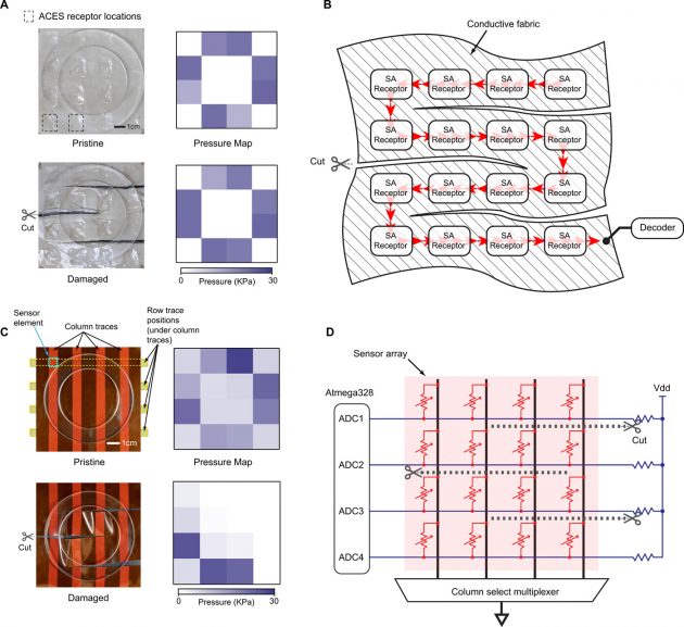 Il senso umano del tatto è una funzione fondamentale per maneggiare oggetti in modo efficiente. Conferisce allo stesso tempo consapevolezza spaziale e comunicazione sociale. Uno dei limiti maggiori delle protesi è che riescono a ridare una buona mobilità, ma il tatto è meno sviluppato di quello umano. Una soluzione potrebbe essere ACES (Asynchronously Coded Electronic Skin), una pelle artificiale costituita da sensori fisici in grado di rilevare pressione, piegamento e temperatura, posizionati all’interno di uno strato di plastica. È stata sviluppata da un gruppo di ricercatori della National University di Singapore guidati da Benjamin Tee e si è guadagnata un pubblicazione sulla rivista scientifica ScienceRobotics.