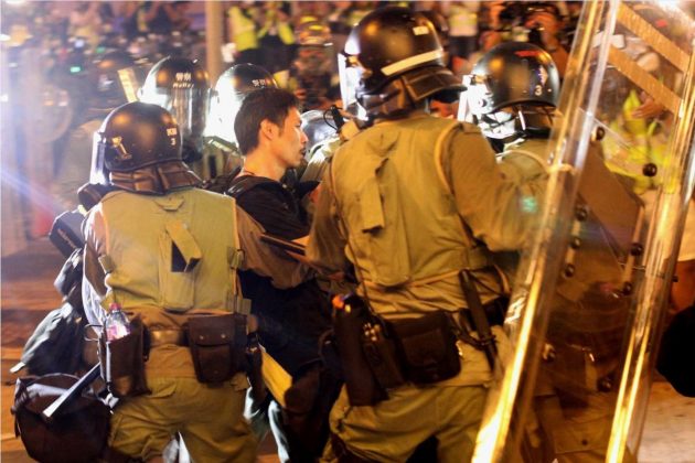 La tensione è salita quando, chiusa la marcia di Civil Human Rights Front (430.000 le adesioni per gli organizzatori, 138.000 per la polizia), le proteste sono continuate circondando, secondo quanto riferito dai media locali, la sede di rappresentanza di Pechino, con lanci di uova e palloncini con inchiostro contro lo stendardo rosso della Repubblica Popolare Cinese al grido di “Hong Kong libera” e “Democrazia adesso”. Circa 4mila agenti in tenuta antisommossa, secondo quanto riferito da un reporter di Afp, equipaggiata con maschere antigas e scudi protettivi, ha fronteggiato la folla a suon di lacrimogeni e proiettili di gomma, riuscendo in parte a disperdere i manifestanti.