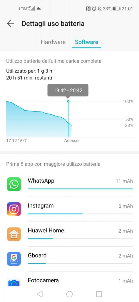 L’autonomia consente di arrivare a sera e coprire anche il giorno successivo con un utilizzo moderato. Nel nostro caso, dopo 27 ore dall’ultima ricarica, avevamo ancora a disposizione il 33% di batteria residua. Un risultato da apprezzare, insieme al supporto alla ricarica rapida a 22,5 Watt, che permette di andare da 0 a 50% in soli 30 minuti.