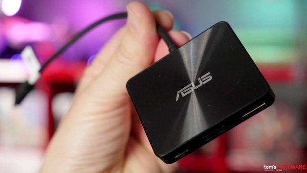 Per quanto riguarda la connettività, sui lati ci sono due porte USB-C e una USB-A, un lettore per le schede microSD e la presa jack per cuffie e microfono. Per compensare alle connessioni mancanti, Asus ha incluso nella confezione un accessorio esterno che aggiunge una porta USB-C utilizzabile anche per la ricarica, un’uscita HDMI e una porta USB tipo A, indispensabile per collegare un monitor e altre periferiche.