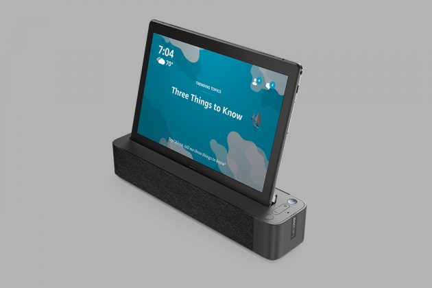 Lo SmartTab P10 di Lenovo è un sistema 2 in 1 che cerca di unire le funzionalità di un comune tablet a quelle di uno smart display, vedendo il produttore commercializzare un pacchetto formato da un tablet Android da 10″ vero e proprio ed una docking station che include speaker e microfoni per interfacciarsi con Alexa, l’assistente vocale di Amazon.