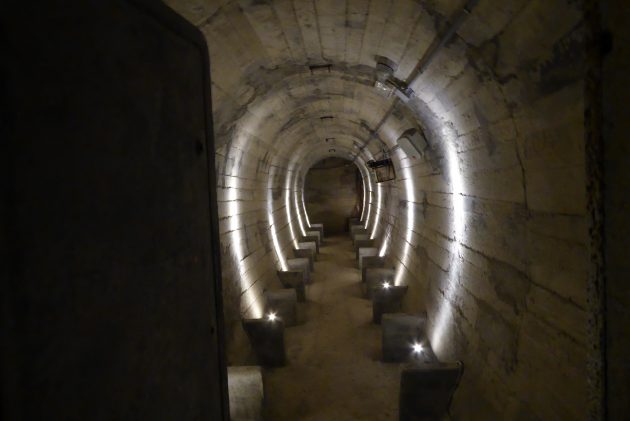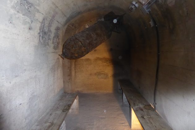 Nelle viscere del bunker si rincorrono immagini ed echi del passato. Come lo scampanellare dispotico della sirena d’allarme o l’immagine del personale che, nascosto nella penombra dei cunicoli freddi e razionali del bunker, tentava di proteggersi dagli attacchi, con spezzoni incendiari o bombe a miscela, della Royal Air Force.