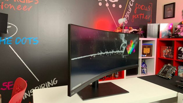 La risoluzione rappresenta la giusta via di mezzo, mentre il rapporto di forma di 32:10 (anziché i più convenzionali 32:9) offre un po’ più di spazio in verticale che torna utile per usare più applicazioni contemporaneamente. Fuori dall’orario di lavoro abbiamo testo qualche videogioco. In questo caso la risoluzione non troppo elevata ha aiutato a non avere immagini rallentate, e la frequenza di aggiornamento di 144 Hz ha fatto il suo dovere. Un PC di fascia alta è in grado di gestire la risoluzione di questo monitor con un frame rate elevato, e permette quindi di sfruttare al meglio le sue caratteristiche.