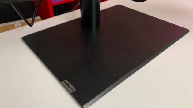 La base larga, pesante e piatta tiene saldamente appoggiato alla scrivania il monitor. Il suo spessore è inferiore a un centimetro, il che permette di posizionarci sopra degli oggetti. L’altezza è regolabile con un’escursione da 10 a 23 centimetri, e per trovare la posizione ottimale a prescindere dall’altezza dell’utente e della scrivania si può anche inclinare il monitor di pochi gradi verso il basso e circa una ventina verso l’alto.