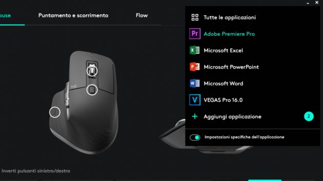 Sempre tramite l’app si possono abilitare le impostazioni specifiche per ciascuna applicazione. Per esempio, si può decidere che posizionando il cursore sulle schede del browser Chrome si userà lo scroller per passare da una scheda all’altra, mentre su Word lo stesso strumento attiverà lo zoom del testo. Si possono poi regolare tutte le impostazioni sul puntamento e lo scorrimento, anche se non si può scegliere l’esatto livello di DPI da usare.