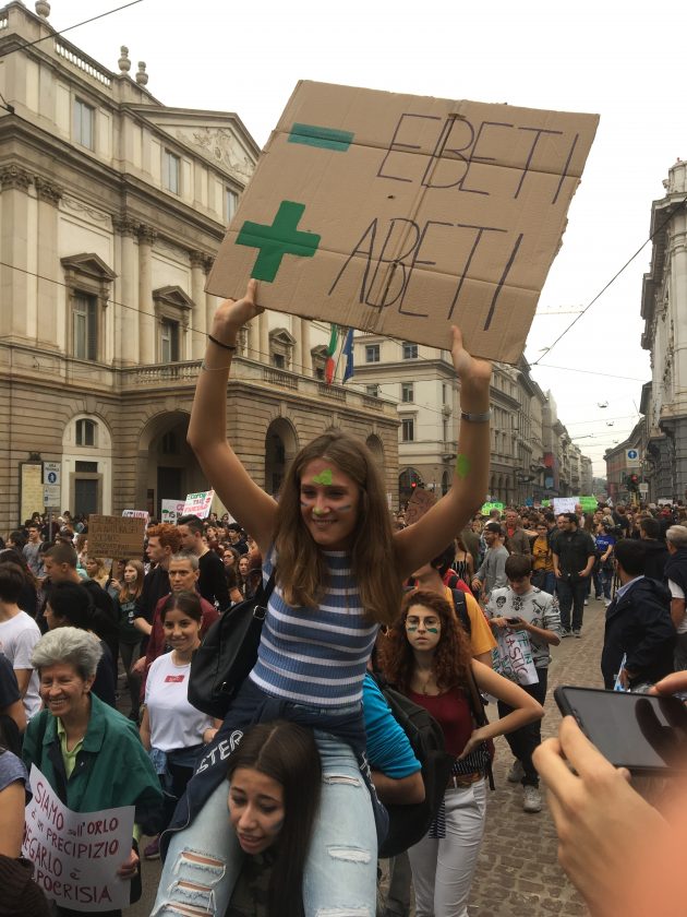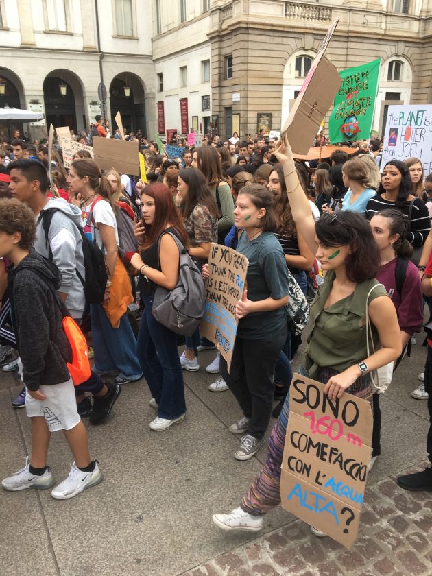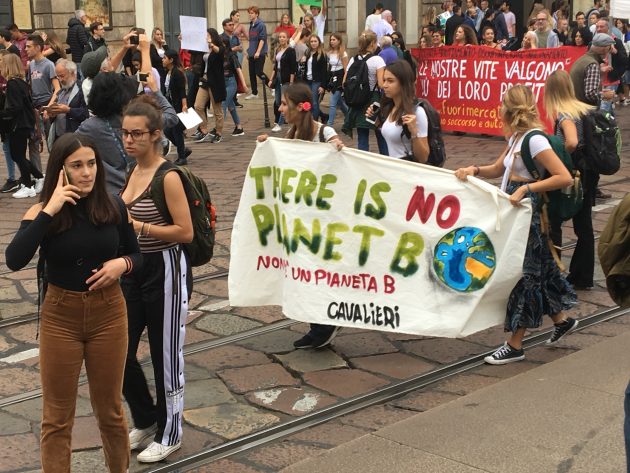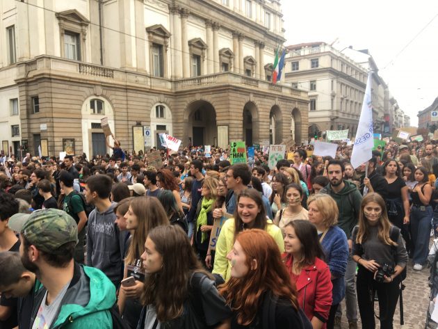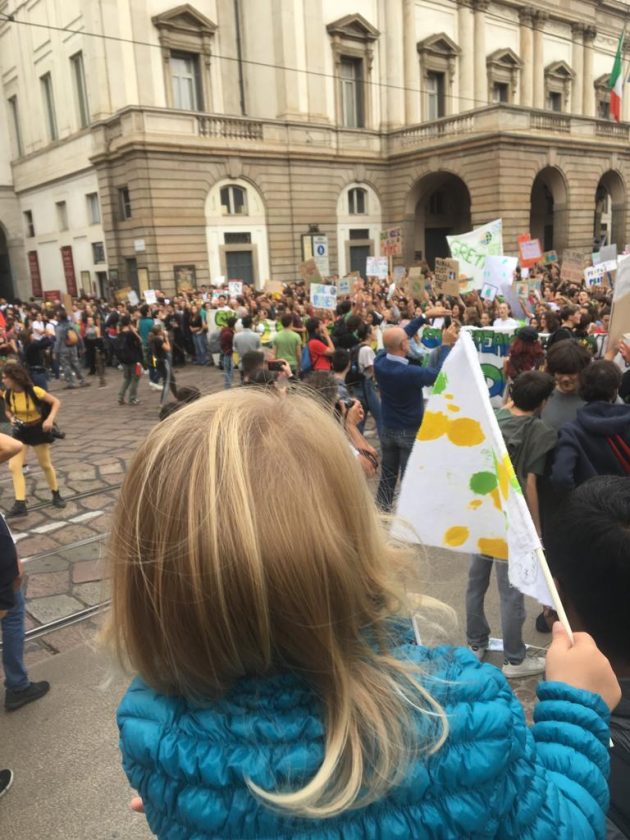 Rossella ha due anni e non lo sa. Che l’ara di Spix, il pappagallo blu del film Rio, probabilmente non vola più nella foresta brasiliana già da 20 anni e che l’ultima speranza di vedere quell’esemplare in Amazzonia è riposta in una sessantina di uccelli in cattività. Gli hanno ridotto l’habitat, minacciato da disboscamento e agricoltura non sostenibile. Se Rossella e i suoi piccoli amici lo sapessero, non riuscirebbero a trattenere le emozioni. Troppo piccoli, i più giovani del terzo ‘Global strike’ la manifestazione sul clima organizzata dal movimento Fridays for Future, alla quale oggi partecipano centinaia di migliaia di persone. Due i cortei a Milano, la mattina quello degli studenti, liceali e universitari, nel pomeriggio quello aperto a tutta la cittadinanza. I ragazzi, che chiedono giustizia climatica e sociale, si sono ritrovati in largo Cairoli e poi hanno marciato alla volta di piazza Duomo.
