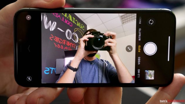 Sul fronte dell’autonomia, grazie al processore e alla nuova batteria più capiente del 15% rispetto a quella dell’iPhone XS, abbiamo registrato un miglioramento fino a quattro ore rispetto ai tempi dell’iPhone XS. In una giornata lavorativa particolarmente intensa con molte chiamate, Whatsapp, navigazione, social, uso intensivo di foto e video, siamo arrivati a sera con il 25/30% circa di autonomia residua.