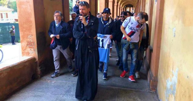 Sono saliti fino al santuario di San Luca, sul colle della Guardia a Bologna, fianco a fianco. Tifosi del Bologna e della Lazio uniti nel pellegrinaggio che è partito questa mattina poco dopo le 9.30 dal capoluogo emiliano per pregare e sostenere Sinisa Mihajlovic, l’allenatore rossoblù ed ex difensore biancoceleste che sta lottando contro al leucemia.