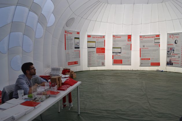 Per superare malumori e rispondere alle richieste di maggiore collegialità, spingere gli attivisti a incontrarsi e confrontarsi sui temi come fecero all’inizio della loro storia, quando iniziò tutta l’avventura. Naturalmente al centro della manifestazione, il villaggio Rousseau: un gonfiabile bianco vicino a un laghetto, davanti al quale a turno vengono presentati gli esempi concreti di partecipazione online per garantire il coinvolgimento dei cittadini. All’interno il banchetto per iscriversi e imparare a utilizzare gli strumenti di democrazia diretta sviluppati fino a questo momento. Quindi un palco, più piccolo rispetto agli anni passati, da cui parlano ministri e sottosegretari. Intorno panche e tavoli per i pic-nic e una raccolta differenziata severissima con un volontario per ogni bidone che controlla cosa viene buttato. All’ingresso, l’iniziativa “Pianta un albero“, una delle poche a cui Gianroberto Casaleggio ha da sempre partecipato e che gli attivisti hanno voluto ricreare proprio quest’anno. Per cercare di dare un segnale e ripartire da dove tutto è iniziato.
