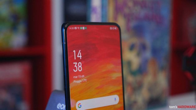 La parte frontale è dominata dallo schermo AMOLED da 6,5 pollici con risoluzione di 2.400 x 1.080 pixel. La fotocamera anteriore da 16 megapixel è montata su un meccanismo a scomparsa che fuoriesce dal bordo superiore dello smartphone, assumendo una forma che ricorda quella di una pinna di squalo. Sul fronte dell’ergonomia non ci sono differenze rispetto al primo Reno: il rivestimento in vetro tende a rendere il prodotto scivoloso, quindi è consigliabile l’uso della cover, inclusa nella dotazione. Il meccanismo a scomparsa funziona, non toglie immediatezza all’uso della fotocamera anteriore, ma tende a raccogliere polvere.
