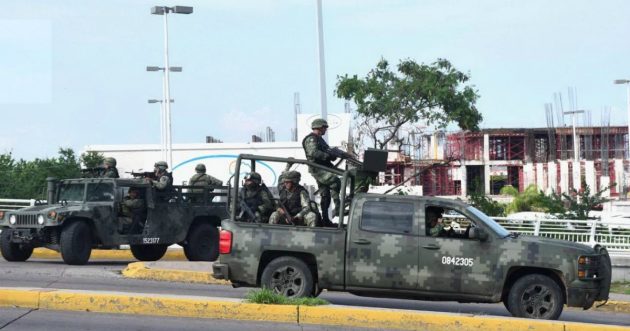 Il distretto commerciale di Culiacán si è quindi trasformato in un campo di battaglia, con macchine e jeep date alle fiamme e un massiccio dispiegamento di veicoli militari. I membri del cartello, dal canto loro, hanno schierato pick-up su cui avevano fissato mitragliatrici.