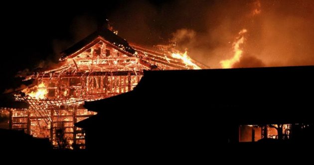 Giappone, il castello di Shuri è stato distrutto completamente da un incendio sull’isola di Okinawa