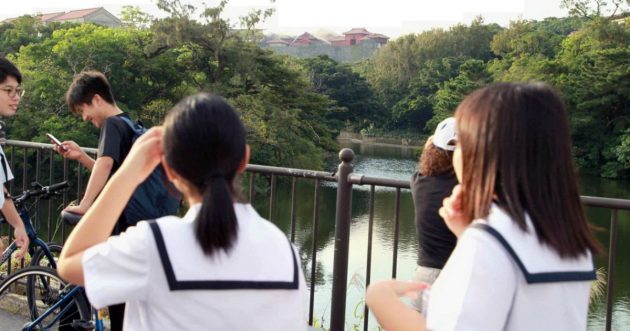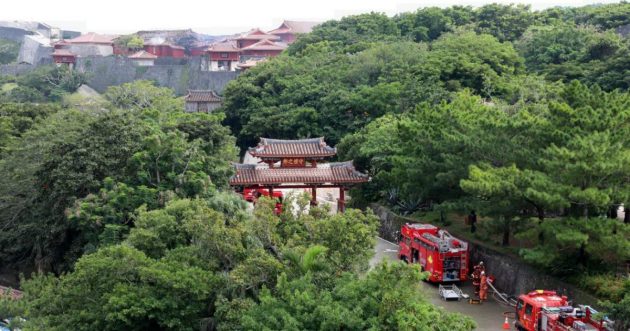 A bruciare è una delle principali attrazioni turistiche dell’isola a Sud Ovest dell’arcipelago: il castello risale al Quattrocento, agli anni del regno Ryukyu a capo del territorio per 450 anni prima dell’integrazione di Okinawa da parte giapponese avvenuta nel 1879. L’isola, infatti, seppur piccola, era considerata un ottimo punto strategico per gli scambi commerciali tra Giappone, Cina e Corea. L’edificio storico era già stato distrutto durante i bombardamenti statunitensi nel corso della seconda guerra mondiale: il castello era stato poi in parte restaurato e aperto al pubblico all’interno di un parco nazionale nel 1992. Il suo valore storico e artistico ha fatto in modo che l’edificio nel dicembre del 2000 rientrasse tra i siti patrimonio dell’umanità del Giappone.