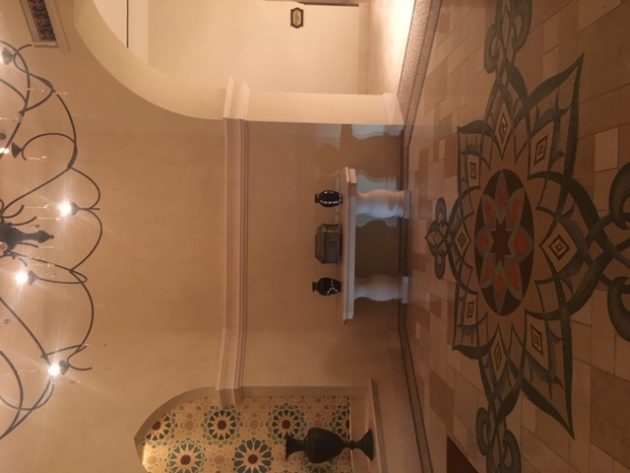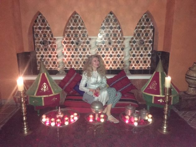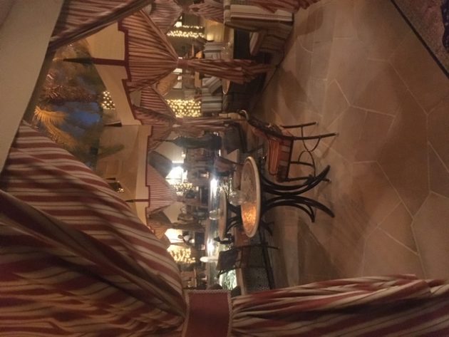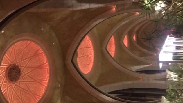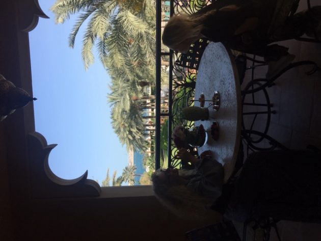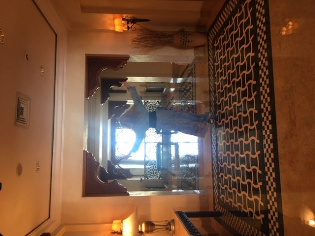 Hic et nunc, ora e adesso. E’ la filosofia “spicciola”, si fa per dire di Dubai. Arrivo per l’aperitivo al One & Only Royal Mirage, (categoria di lusso estremo del Leading Hotels of the World). Sono praticamente tre alberghi in uno. Tre reception, tre diversi state of mind, in un unico concept (di tutto di più di quello che potete immaginare). Si chiama Palace e riecheggia in tutta la sua magnificenza un palazzo da maraja. Da qui il tramonto è una cartolina (senza aggiunta di photoshop) e mentre una palla infuocata si tuffa nel mare il dilemma della scelta: una seduta di yoga sulla spiaggia con saluto al sole o un aperitivo al Jetty Lounge. Faccio tutte e due. Nel bicchiere della pignacolada sembra che abbiano piantato una palma da cocco in miniatura, fluorescente. Sopra la mia testa ondeggiano ventagli di palme. Un tappeto di petali di rose mi conduce al Tagine Restaurant, la varietà dei cous cous elencati sul menù mi stuzzica vari appetiti.