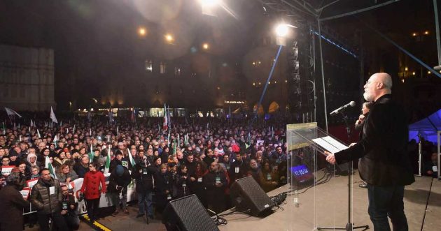 Per la Lega e il centrodestra la partita dell’Emilia-Romagna è decisiva per riuscire a lanciare l’assalto al governo. E proprio contro il Carroccio ha esordito Bonaccini: “Chi dice di voler prendere la Regione non ha alcun senso civico“, ha detto dal palco. “La Regione non si prende, perché non appartiene a un partito, e nemmeno a un presidente, che la guida pro tempore. Questa Regione è dei suoi cittadini e per affidartene la guida devono capire che la conosci e la rispetti”. Ma soprattutto, il candidato del centrosinistra ha cercato di parlare al M5s che, nonostante l’alleanza di governo a Roma, hanno deciso di correre da soli: “Ci rivolgeremo a tutti i cittadini, anche a quelli che legittimamente votano 5 stelle. Rispetto tutte le decisioni. Ho tenuto aperta la porta del confronto. Non ho mai tirato per la giacca nessuno. A loro adesso chiedo, visto che negli ultimi mesi abbiamo approvato insieme tutte le scelte più importanti, non era meglio confrontarsi sui programmi piuttosto che arroccarsi in un isolamento che rischia di rendervi irrilevanti?”. E ancora, ha detto alzando la voce mentre la folla applaudiva: “Davvero noi e i nostri avversari di questa destra siamo uguali? Sarà davvero la stessa cosa se il 26 gennaio sarà presidente Bonaccini o la Borgonzoni? Non resteremo disponibili al confronto anche il giorno dopo. Perché non è vero che sono e siamo tutti uguali”.