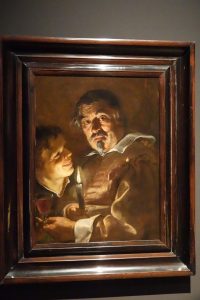 “Un ragazzo serve da bere a un uomo a lume di candela” di Adam de Coster.