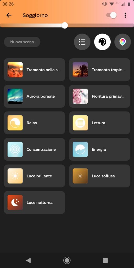 Dopo aver configurato sull’app la prima stanza, siam passati all’installazione in altre due stanze delle restanti due lampadine; rispetto a quelle presenti nel kit, e già inserite prima di installare il bridge, è necessario farle rilevare al sistema, e la cosa ha richiesto qualche attenzione in più: per farle trovare dall’app abbiam dovuto praticamente avvicinare lo smartphone alla lampadina accesa; in alternativa è possibile appuntarsi il codice scritto sul corpo della lampada ed utilizzare quello per facilitare il rilevamento della stessa.