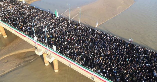 Le bare del generale e Abu Mehdi al-Mouhandis, capo militare iracheno filo-iraniano ucciso nella stessa operazione voluta da Donald Trump, sono state trasportate su un camion ornato di fiori e coperto da un telo con disegnata la cupola della Roccia di Gerusalemme. Il mezzo si è fatto stradamolto lentamente attraverso la folla giunta ad Ahvaz anche dalle città vicine per commemorare il comandante militare più amato dal popolo. L’agenzia semi-ufficiale Isna parla di una quantità di partecipanti “innumerevole”, l’agenzia Mehr, vicino agli ultra-conservatori, di un “numero incredibile” e la tv di Stato di una “folla gloriosa”.