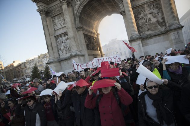 Disordini e scontri a Parigi e in tutta la Francia contro la riforma delle pensioni, con gruppi di black bloc che hanno dato alle fiamme panchine, scooter, cassonetti e rifiuti a place de la Republique. E mentre nel 38esimo giorno di proteste migliaia di manifestanti sfilano per le strade – solo 150mila nella capitale -, il governo prova a disinnescare la mobilitazione: ha infatti annunciato il ritiro provvisorio dell’età di equilibrio a 64 anni, che nelle intenzioni dovevano essere necessari per ottenere la pensione a tasso pieno. Era questo il punto chiave delle proteste, la misura più controversa della riforma, respinta dal 61% dei francesi e che nessuno dei sindacati, neppure il moderato e maggioritario Cfdt di Laurent Berger, intendeva accettare. “Per dimostrare la mia fiducia verso i partner sociali, e non pregiudicare l’esito dei loro lavori sulle misure da attuare per ottenere l’equilibrio nel 2027 – ha fatto sapere il premier Edouard Philippe in una lettera inviata alle organizzazioni sindacali e citata da Le Parisien -, sono disposto a ritirare dal progetto di legge la misura di breve termine che avevo proposto, che consiste nel convergere progressivamente, a partire dal 2022, verso un’età di equilibrio di 64 anni nel 2027″, ha scritto il primo ministro. E domani, per la prima volta dopo 38 giorni, “tutte le linee della metropolitana di Parigi e le RER A e B saranno aperte almeno parzialmente”.
