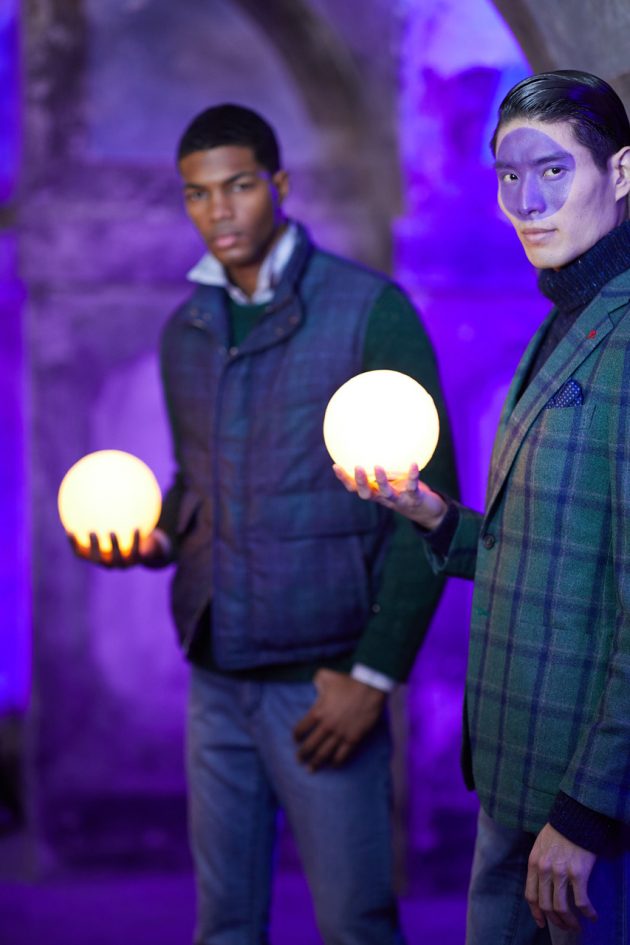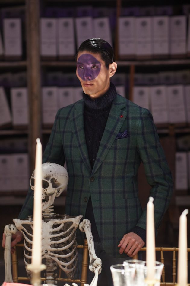 Le sfilate di Isaia, storico brand sartoriale napoletano molto apprezzato all’estero, sono excursus storici. L’anno scorso si è ispirato alle settecentesche porcellane borboniche della Real Fabbrica di Capodimonte, quest’anno alla Napoli sotterranea, un dedalo di ipogei e cunicoli, grotte dalle volte ciclopiche, condotti acquei, scavati con pazienza secolare, che durante il regno borbonico servivano anche come via di fuga. Napoli millenaria, lì sotto c’è perfino il teatro in cui Nerone nel 64 d.c esordì come attore. E il cimitero delle Fontanelle, ancora luogo di culto dove si può “adottare” un teschio delle anime pezzentelle, orfane, e pregare per loro. E visto che i tunnel/bunker durante la guerra venivano usati come rifugi anti/atomici Gianluca Isaia, terza generazione al solido timone dell’azienda, per la collezione si ispira alle divise militari, come la flying heavy jacket, provvista di utile zainetto pieghevole. E spiccano nell’oscurità del sepolcreto meneghino della Ca’ Granda i tessuti flu trattati in maniera tale da essere visibili anche al buio come le divise dei vigili.