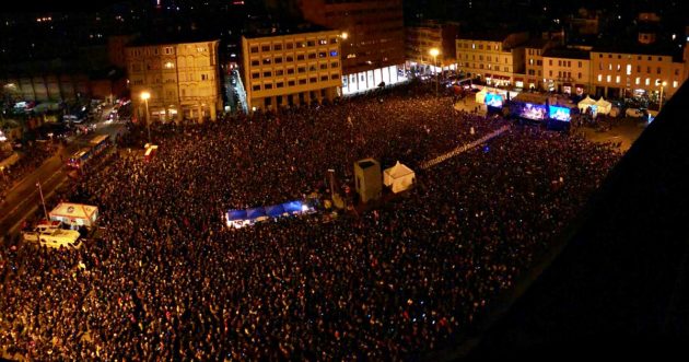 Il concertone è stato aperto sulle note del nuovo inno, “Siamo sardine e siamo tante, siamo formiche col passo di elefante, siamo l’allarme che sta già suonando, spargete voce, il vento sta cambiando”. Tante le sardine multicolor, il simbolo del movimento nato appena due mesi fa, sempre nel capoluogo emiliano-romagnolo, in piena campagna elettorale, e i cartelli contro l’odio, per l’ambiente o in difesa della democrazia. “Riportare la gente nelle piazze è la prima vittoria“, ha detto Mattia Santori, tra i fondatori e portavoce delle sardine. “Non dobbiamo dimenticarci che fino a qualche mese fa il clima politico e sociale che c’era in Italia era completamente opposto a quello che c’è adesso. In qualche modo si è già ottenuto qualcosa”.