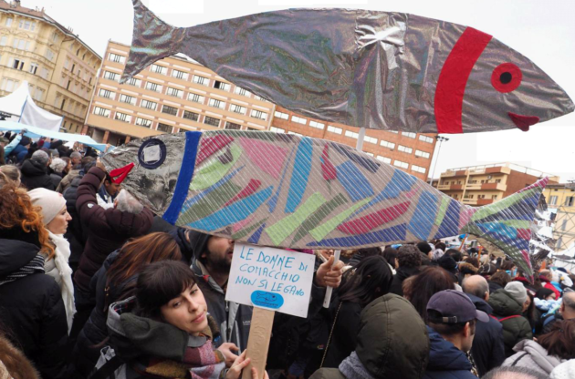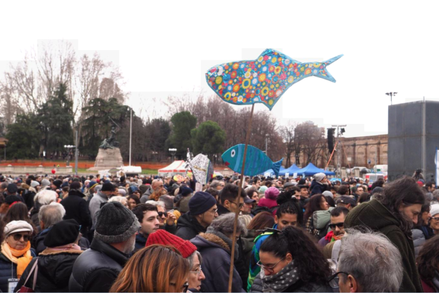 Il programma dell’evento comprendeva nomi e volti dello spettacolo e della musica, della cultura e della società civile, da Marracash ai Subsonica, da Pif agli Afterhours, da Makkox ai Modena City Ramblers. “L’apparizione delle sardine è stata come un raggio di sole dopo che piove per un mese: uno respira”, ha detto Francesco Guccini in un video proiettato in piazza nel quale incontra i ragazzi fondatori del movimento. “Le sardine hanno dato voce a un mucchio di gente con cui la sinistra aveva perso contatto. Altro che ‘prima gli italiani’, ci sono anche italiani contrari a questi slogan, alla prepotenza e all’arroganza”.