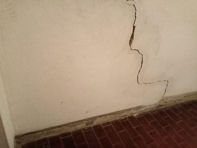 Due anni dopo l’edificio presenta crepe – ora monitorate – sui muri dei garage e sulle scale. “Queste crepe orizzontali che vanno dal muro alle scale sono le più preoccupanti – spiega a ilfattoquotidiano.it l’architetto Pierfilippo Checchi di Legambiente e condomino dell’edificio in questione – perché significa che sta succedendo qualcosa alla struttura portante”.