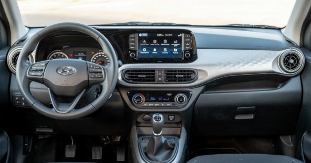 Un’auto per giovani non può prescindere dalla connettività e sulla Hyundai i10 non manca la ricarica wireless per i cellulari, la compatibilità con Android Auto ed Apple Car Play, il sistema Bluelink che fornisce in tempo reale informazioni sul meteo e sulla viabilità, aggiornamenti sui parcheggi e distributori di carburante, prezzi compresi. Da remoto si può aprire e chiudere la propria auto, verificare le sue condizioni ma anche cercare i punti di interesse e inviare i risultati direttamente al navigatore della macchina. Si tratta di equipaggiamenti già ereditati dai modelli più grandi, come lo sono anche tutte le dotazioni di sicurezza di serie che si trovano su questa compatta: la frenata autonoma di emergenza, la gestione automatica dei fari abbaglianti, il mantenimento della corsia, il rilevatore di stanchezza del guidatore e il riconoscimento dei limiti di velocità. I sensori presenti sul frontale sono stati sostituiti da un’unica camera multifunzione posizionata in alto e al centro del parabrezza, per evitare i malfunzionamenti che potrebbero derivare dal ghiaccio o dai sassi sulla strada.