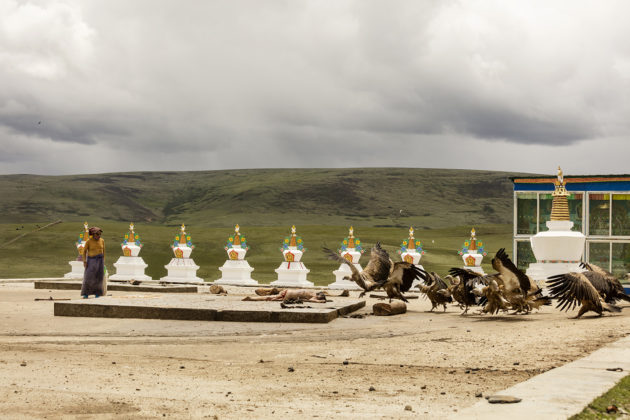 Oggi, Losan Piatti prova a rimettere insieme i pezzi di una vita intera, lavorando a un progetto fotografico sul Tibet. Nel libro c’è una serie di foto che non si possono dimenticare. Potenti, spiazzanti, stordenti. Raccontano il funerale celeste, la jhator, in cui i defunti tibetani vengono fatti a pezzi da un officiante davanti ai parenti e agli abitanti del villaggio e i cui i resti, mischiati all’orzo tostato, vengono dati in pasto ai grifoni himalayani.