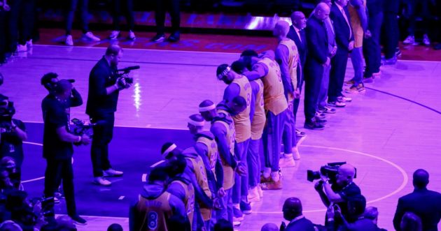 Fuori dallo Staples Center si era radunata la folla per poter seguire sui maxischermi la partita, poi vinta dai Portland Trail Blazers 127 a 119, ma soprattutto per assistere alla commemorazione di Black Mamba. Il discorso di LeBron James, unico a parlare, ha commosso tutti: “Mi ero preparato qualcosa di scritto ma tradirei la fiducia di tutta la Lakers Nation se leggessi qualcosa di preparato perciò vi parlerò dal cuore. La prima cosa a cui penso è il senso di famiglia. Guardandomi intorno vedo che tutti siamo in lutto, stiamo soffrendo, abbiamo il cuore a pezzi, ma in momenti del genere l’unica cosa da fare è appoggiarsi alla spalla di uno di famiglia”.