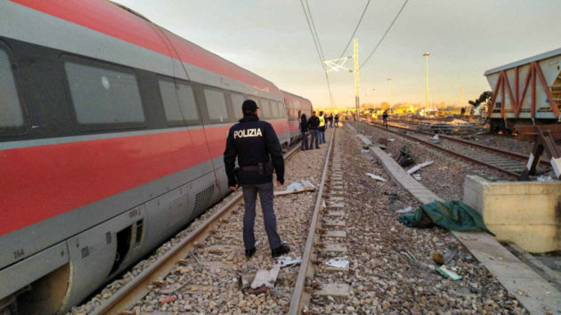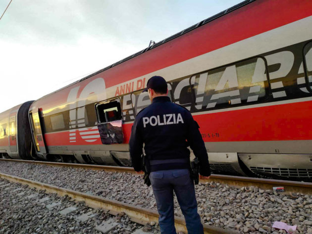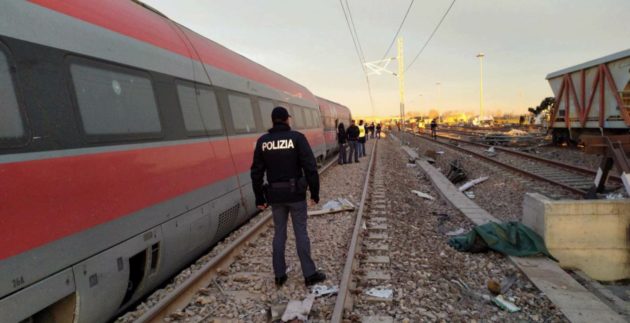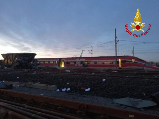 La dinamica dell’incidente – Secondo le forze dell’ordine la motrice del convoglio, dopo essere sviata dai binari per cause ancora da chiarire, sarebbe uscita completamente dalle rotaie finendo prima contro un carrello che si trovava su un binario parallelo, e poi contro una casa cantonale delle ferrovie, dove ha terminato la sua corsa, ribaltando anche la sua direzione, con la testa rivolta verso Nord (e non verso sud, direttrice del treno). La motrice è stata scagliata a una cinquantina di metri, dove ha sfiorato una postazione tecnologica, edificio che contiene gli apparati tecnici. Non appena è avvenuto il deragliamento del treno Frecciarossa sono scattati tutti i sistemi di sicurezza dell’alta velocità, bloccando i treni che stavano viaggiando in quel momento. I binari dell’alta velocità sono dotati di sensori di passaggio: nel caso non si liberino nel tempo previsto dal passaggio delle carrozze, inviano un segnale di allarme che automaticamente blocca il traffico. Ed è quando avvenuto questa mattina.