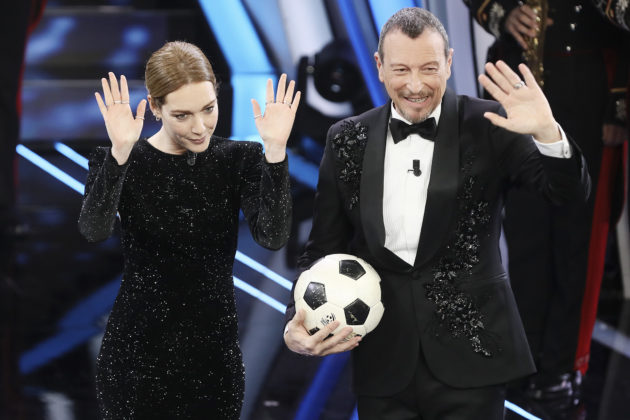 22.02 – “Ti sono mancata?”, chiede Diletta Leotta, che torna al fianco di Amadeus per la finale. Scende le scale con un vestito dallo strascico lunghissimo, subito ridefinito “aquilino” da Ama. Lei usa (per l’ennesima volta) una metafora calcistica e dice che il pallone d’oro, per questo Sanremo, lo vince Amadinho. La gara prosegue con Irene Grandi, Alberto Urso e Diodato. Per Fai Rumore partono svariati applausi dalla sala stampa: è senz’altro la canzone preferita dai giornalisti.