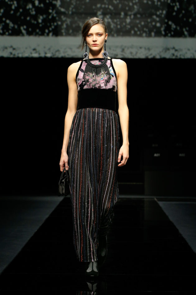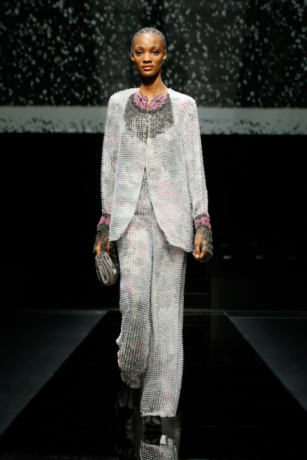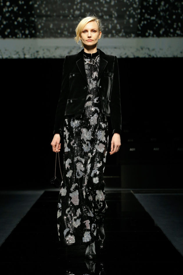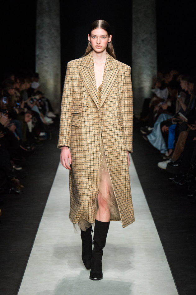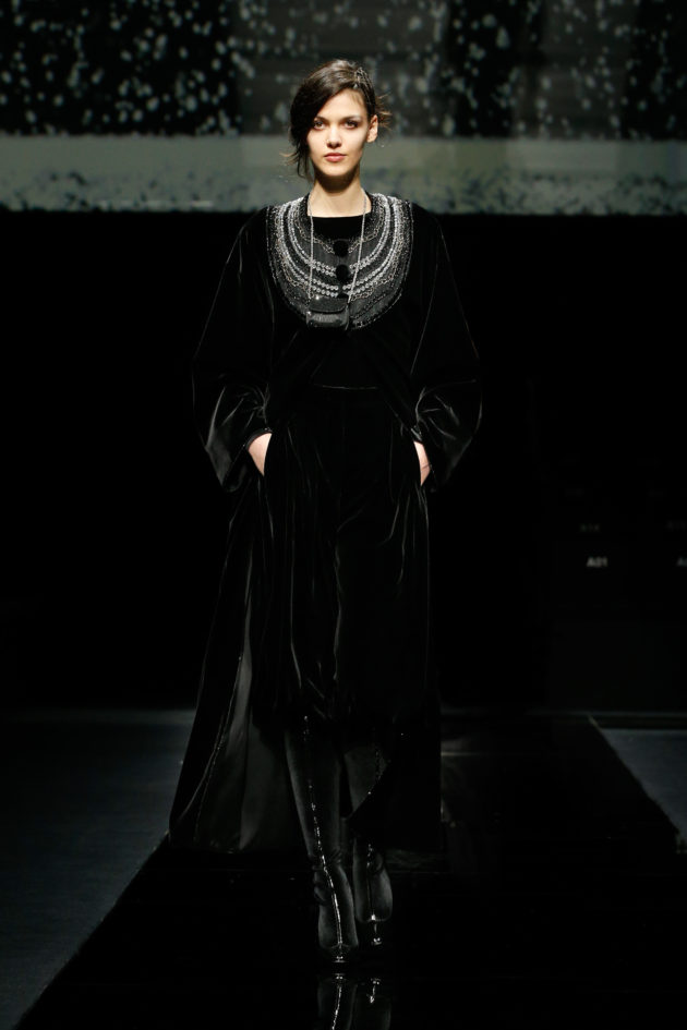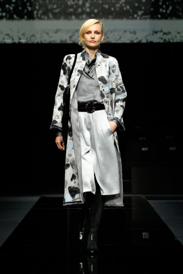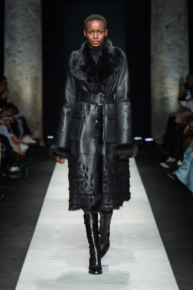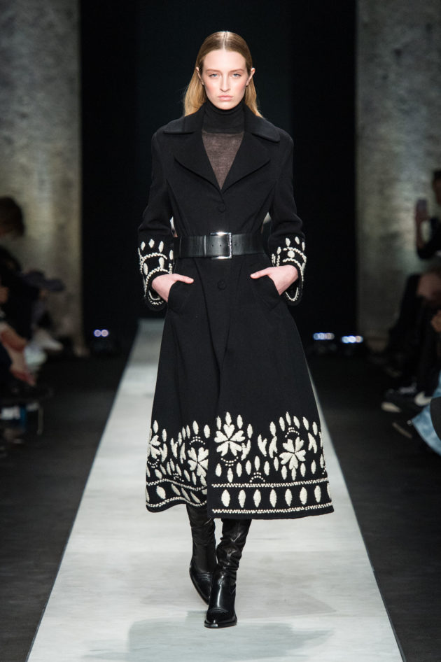 Prima dei dati allarmanti aveva sfilato Ermanno Scervino, in un’ armonia di contrasti, un mix tra femminile e maschile, delicatezza e forza, frivolezza e severità. C’è una lavorazione certosina di tessuti e materiali, la pelle tagliata a laser che diventa un ricamo, trasparenze e ricami anche su tessuti e sulla lana che regalano quel tocco sensuale che fa piacere indossare. “Amo contaminare il maschile col femminile, il pizzo con tessuti dall’anima tecnica, il cappotto dalle spalle importanti e la sottoveste più delicata – backstage spiega lo stilista – ma l’importante in un vestito è la donna che lo indossa”.
