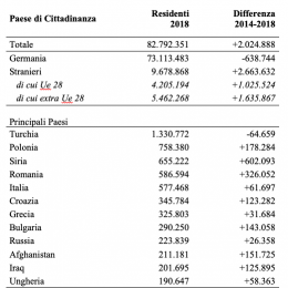 Dal 2014 al 2018 la popolazione straniera in Italia è aumentata di 200 mila unità, passando dall’8,1 all’8,5 per cento della popolazione; in Germania è cresciuta di 2,6 milioni: dall’8,7 all’11,7 per cento della popolazione.
