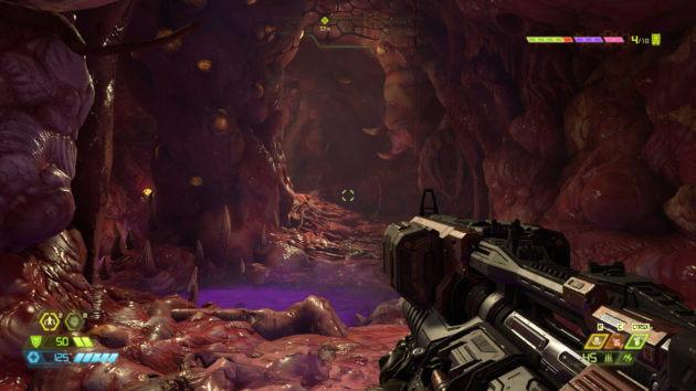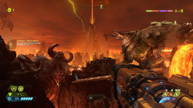 Mescolate tutti questi nuovi ingredienti e aggiungete le funzionalità delle armi, i moveset e gli attacchi diversificati dei nemici, la densità folle delle arene, una maggiore verticalità degli spostamenti e del raggio d’azione, e avrete una chiara idea di quanto idSoftware abbia riempito di steroidi la sua creatura. Ma non basta, perché la tronfia ipertrofia del gameplay prevede che ogni arma abbia due moduli intercambiabili, dei potenziamenti extra che ne cambiano le funzionalità, le rune che indirizzano con più precisione lo stile di gioco, e delle abilità passive che possono ulteriormente velocizzare le uccisioni epiche e la ricarica di armi, granate e scatto.
