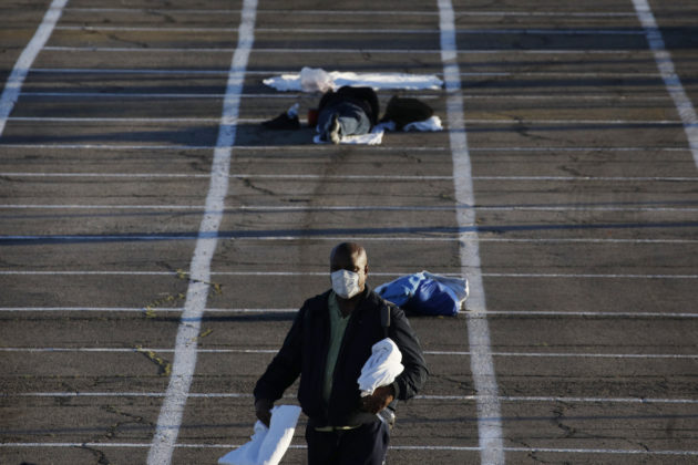 Las Vegas, un parcheggio trasformato in "rifugio per senzatetto" con indicatori di distanza socialiLas Vegas, un parcheggio trasformato in "rifugio per senzatetto" con indicatori di distanza sociali