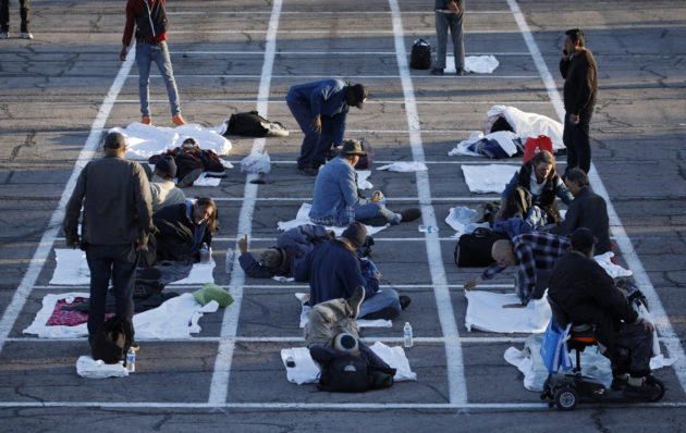 A suscitare l’indignazione sono state le foto, finite sui social, dove si vedono i senzatetto occupare con i loro materassini rettangoli dipinti di bianco sul cemento, come i posti per le auto, anche se sono stati pensati per mantenere la distanza sociale di circa due metri.