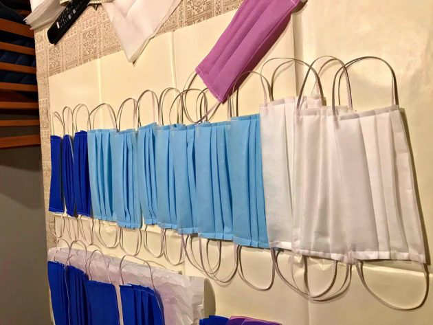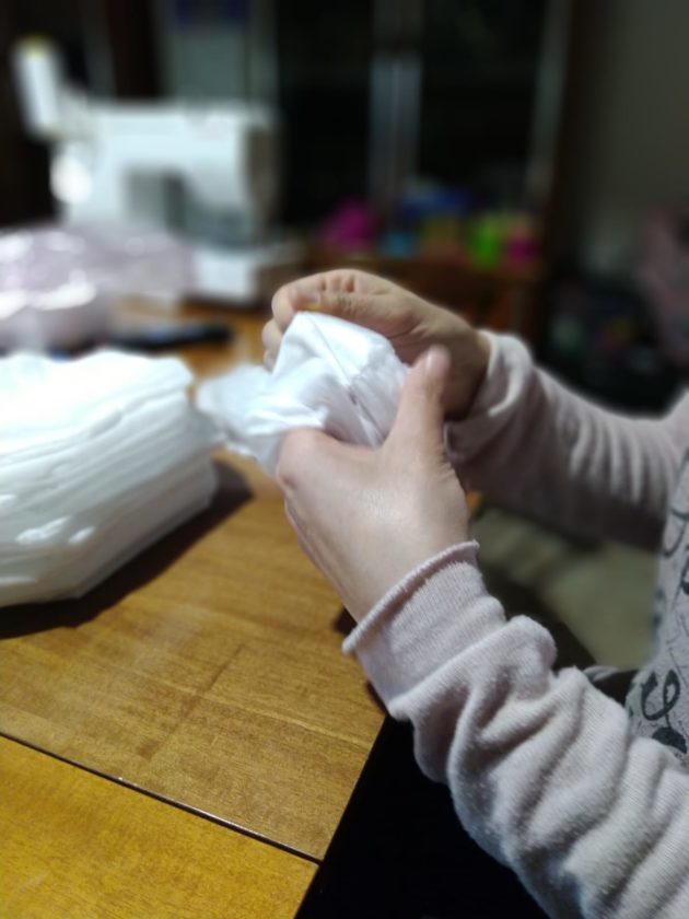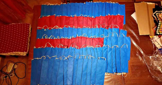 “Il materiale che si usa è un po’ particolare è il TNT, tessuto non tessuto, quello che si usa per le tovaglie usa getta nei ristoranti o per composizioni floreali o per teli cani e gatti o in agricoltura. Dopo un po’ di peripezie lo abbiamo trovato. Molti privati – dice Francesca – lo stanno donando, per esempio gli agricoltori che lo usavano per coprire le piantine, e insieme alla Protezione civile di Santadi abbiamo organizzato la fornitura di TNT +filo + elastico a tutte le sarte che stanno aderendo all’iniziativa. L’idea era di farne un buon quantitativo per gli ospedali e poi continuare la produzione per regalarle alla popolazione dando precedenza a chi lavora con il pubblico, cassieri, assistenza domiciliare, assistenza anziani, negozi, impiegati, e poi al resto della popolazione”. Un’esperienza “bellissima, che unisce anche i paesi” e poi c’è chi in questa iniziativa ha trovato grande sollievo: “Una malata oncologica che ha perso il marito e adesso si dice felice di potersi rendere utile anche per quell’ospedale che la sta curando”.