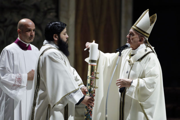 Il diritto alla speranza. La veglia della notte di Pasqua, durante la pandemia che ha già ucciso oltre 100mila persone nel mondo, non ha battesimi, non ha popolo, non prevede la preparazione del Cero e neanche l’accensione dei lumini per i pochi che assistono nell’immensa Basilica di San Pietro che, deserta, appare ancora più immensa.