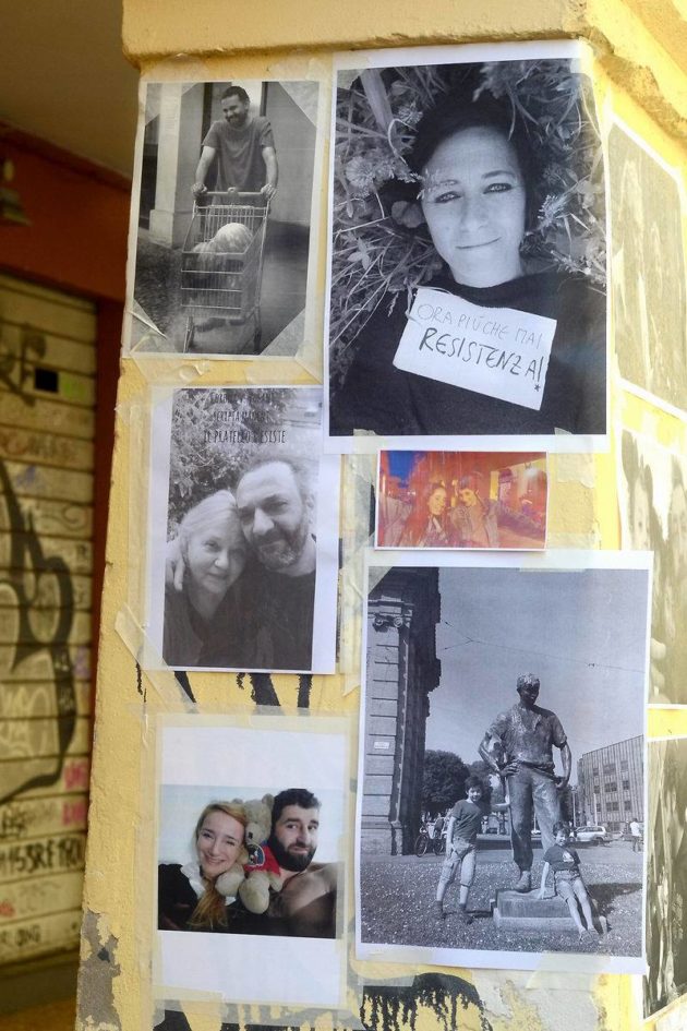 25 aprile, “attaccate sotto i portici una vostra fotografia”. Così a Bologna il quartiere del Pratello si popola di facce nonostante il lockdown