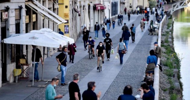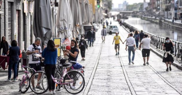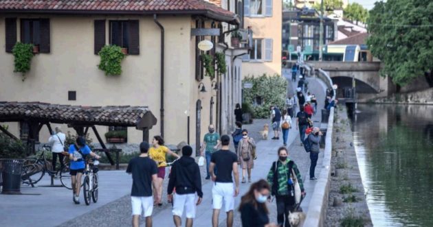 La zona più famosa della movida milanese aveva cominciato a ripopolarsi già dal 4 maggio, ma le immagini dei Navigli presi d’assalto dalla folla, registrate giovedì pomeriggio, hanno fatto scoppiare la polemica: a parte qualche mascherina che si intravede qua e là, sembrano foto scattate la scorsa primavera, quando non esisteva il distanziamento sociale. Un happy hour in piena regola: tanti capannelli, ragazzi seduti ben più vicini del fatidico metro ‘di sicurezza’, mascherine sì, ma molte – troppe – abbassate sul mento o sul collo. Sui social si è scatenata un’ondata di critiche, considerando anche che la Lombardia è una regione ancora in bilico: da sola, registra la metà dei nuovi dei contagi accertati ogni giorno in Italia. Intanto l’infettivologo Massimo Galli, intervistato da Repubblica, avvisa: “La situazione di Milano è un po’ una bomba, appunto perché in tanti sono stati chiusi in casa con la malattia. Abbiamo un numero altissimo di infettati, che ora tornano in circolazione. È evidente che sono necessari maggiori controlli”.