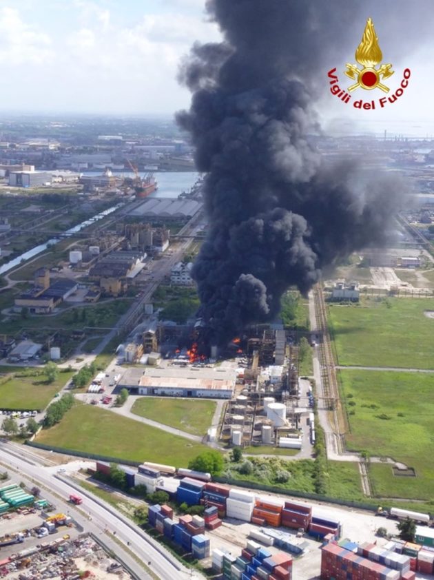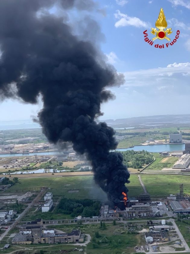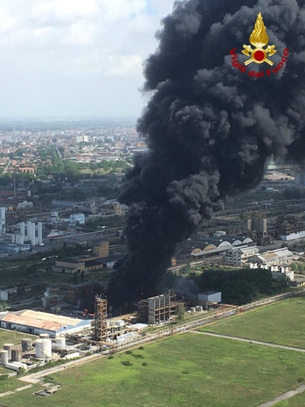A innescare l’incendio, alle 10.15 circa, è stato lo scoppio di un serbatoio. Le fiamme erano visibili a chilometri di distanza e, visti i materiali lavorati nell’impianto, il comune di Venezia aveva chiesto ai cittadini di rimanere in casa, chiudendo porte e finestre. La Polizia locale ha informato che, in base al Piano per le industrie a rischio di incidente rilevante, è necessario anche mettere panni umidi vicino a porte e finestre. In un video si capisce come l’esplosione abbia letteralmente strappato via le finestre di un appartamento a poca distanza dallo stabilimento, distruggendo gli arredi e rovesciando a terra ogni cosa, come fosse un terremoto.