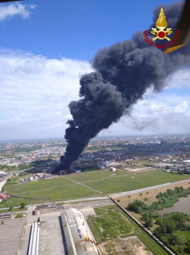 L’incendio ha interessato un’area di 10mila metri quadrati. Il traffico attorno alla zona è stato interrotto e tutte le linee di trasporto pubblico, compreso quello ferroviario, che passano in zona sono state deviate o sospese, mentre sale l’allarme anche nelle province vicine e il Comune di Venezia in un tweet avvisa che il vento spira “in direzione centro storico” spingendo quindi il fumo verso la laguna.