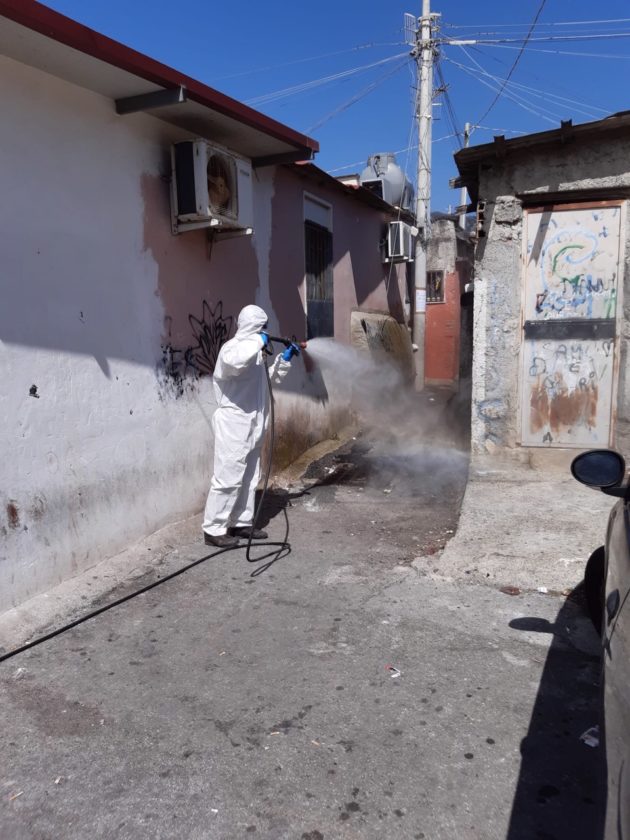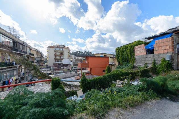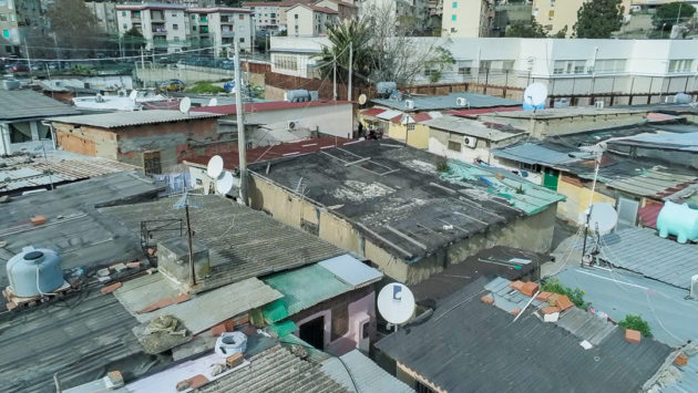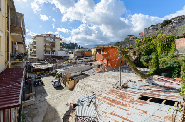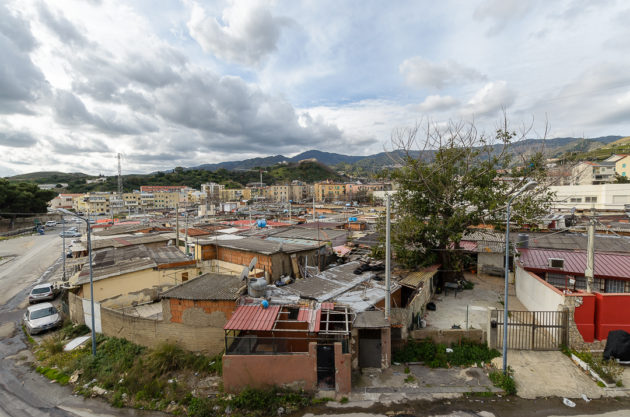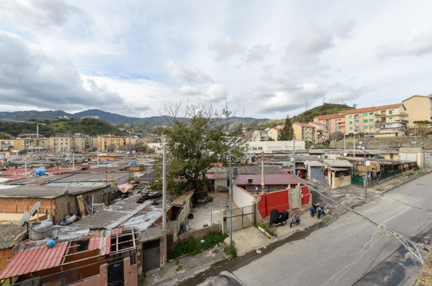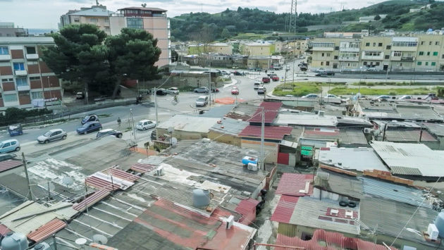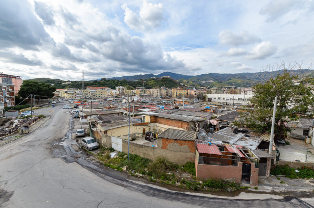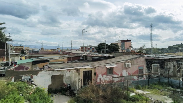 È la mattina di giovedì 7 maggio, un giorno di agitazione per i “baraccati” di Fondo Fucile, come li chiamano da sempre a Messina. Protezione civile, esercito, vigili e perfino il vicesindaco, Salvatore Mondello, tutti lì, dove si fa fatica a percepire la mano dello Stato, per la sanificazione. Sono stati avvertiti per tempo, ma al mattino c’è ancora chi chiede chiarimenti. “Mia moglie ha difficoltà respiratorie, come si fa?”. I funzionari del Comune devono spiegare che il prodotto che stanno spargendo non è nocivo per le persone: “Stiamo sanificando, per il loro bene lo facciamo, ma restano guardinghi”, sottolinea il presidente della società comunale. L’attenzione della politica – di solito concentrata solo in periodi elettorali – da queste parti è vissuta sempre con diffidenza: “Va bene la disinfestazione ma questa immondizia quando la levate?”, la signora Santa lo chiede mano sul fianco alla squadra comunale, indicando un ammasso di immondizia, due metri circa di altezza e dieci di estensione: i rifiuti sono tutti a ridosso di un’altra fila di baracche. Viste dall’alto formano un tappeto di amianto, interrotto da strade comunali, perfino da quella centrale che porta dritto all’autostrada. Da un lato e dall’altro della strada: proprio il muro che costeggia la grande arteria pre autostrada è un domino di baracche che termina solo quando iniziano le mura del Policlinico, la più grande struttura ospedaliera di tutta la provincia, sorta come cattedrale nel deserto, immersa com’è tra favelas ed edifici popolari.