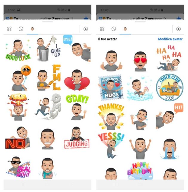 Per ognuna di queste opzioni ci sono diverse combinazioni possibili. Una volta creato, l’avatar sarà disponibile sia all’interno dei commenti ai post su Facebook, ci si accedere sempre attraverso l’icona a forma di faccina.