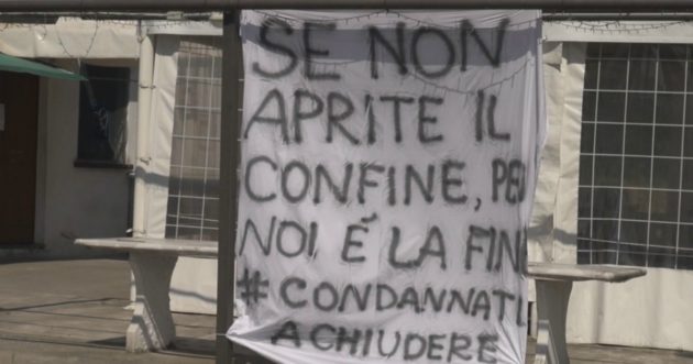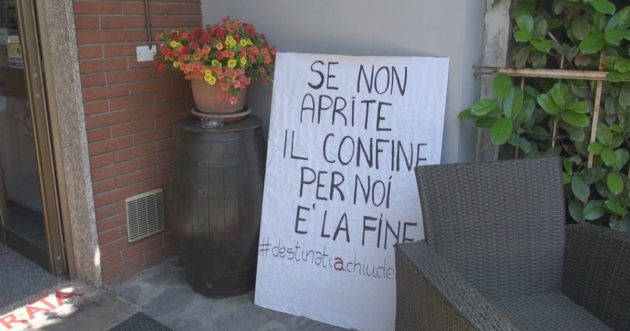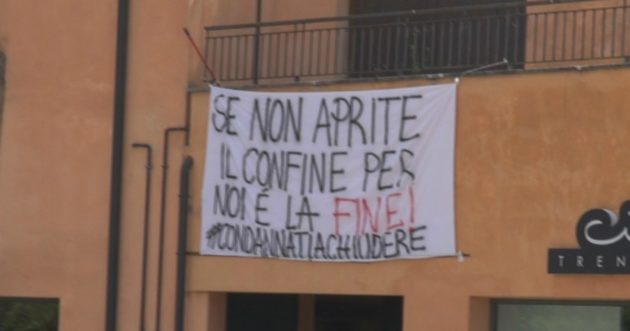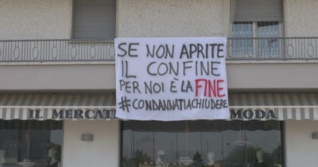Striscioni per dire che non ce la fanno più. E che non capiscono perché non si possa aprire il confine che separa Castelvetro Piacentino (Emilia Romagna), dove le loro attività commerciali stanno soffrendo sempre di più, dalla Lombardia. Perché Castelvetro – 5000 abitanti sulla sponda emiliana del Po – è in una posizione particolare: si trova a un chilometro da Cremona e 30 da Piacenza. Di fatto i negozi sono aperti, ma con l’impossibilità di attraversare i confini regionali, denunciano i commercianti, si perdono clienti e fatturato. Da molti viene considerata prima periferia cremonese, lì vivono e lavorano anche grazie agli stretti rapporti sociali e commerciali con la città di Stradivari. “Se non aprite il confine siamo destinati a chiudere”, si legge sui cartelloni di protesta, insieme all’hashtag #destinatiaachiudere.