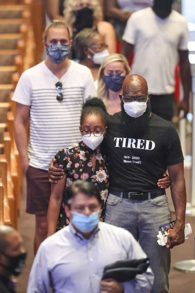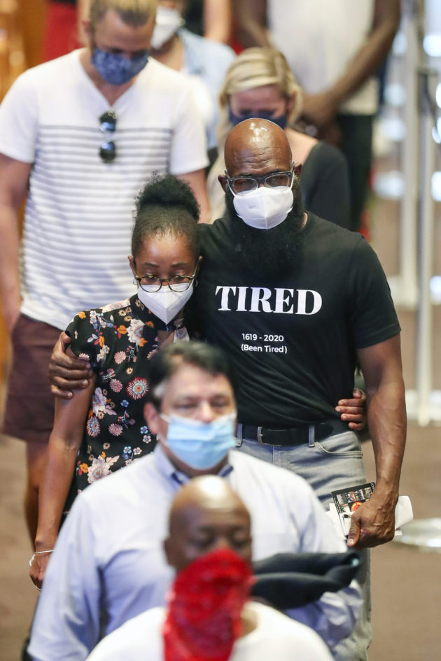 Migliaia di persone, tra cui anche il capo della polizia di Houston, Art Acevedo – che aveva detto a Trump di “tenere la bocca chiusa” – si sono radunate alla Fountain of Praise Church per l’ultimo saluto, mentre i funerali, in forma privata, si svolgono alle 11 ora locale (le 20 in Italia). Seguendo le norme sul distanziamento sociale, i visitatori, molti dei quali indossano magliette a sostegno di Black Lives Matter e con le ultime parole di Floyd “Non riesco a respirare”, sono entrati in chiesa a sei piedi di distanza l’uno dall’altro e indossando le mascherine.