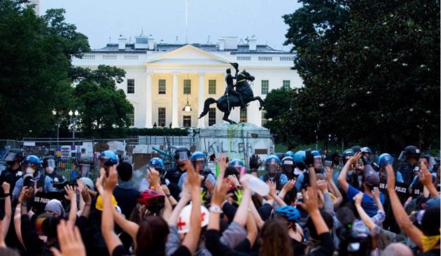 “Hey, Hey, Ho, Ho, Andrew Jackson’s got to go“. Le urla dei manifestanti davanti alla Casa Bianca si erano fatte insistenti quando hanno deciso di legare con delle corde con l’obiettivo di abbattere la statua di Andrew Jackson, il presidente americano responsabile del cosiddetto ‘sentiero delle lacrime’ (la deportazione forzata dei nativi americani dalle loro terre), nonché idolo di Donald Trump. Un gesto forte, a pochi passi dalla residenza del presidente che ha spinto la polizia a un intervento deciso: elicotteri hanno sorvolato l’area mentre gli agenti sul campo hanno usato spray al peperoncino contro i 150-200 manifestanti presenti e formato un cordone per proteggere la statua e la Casa Bianca. Anche il tycoon stesso ha deciso di usare il pugno di ferro a seguito di questo episodio. Trump, infatti, ha autorizzato il governo federale ad arrestare chiunque vandalizzi o distrugga i monumenti, statue e altre proprietà federali negli Stati Uniti e chi non rispetterà l’ordine rischierà “fino a 10 anni di carcere sulla base del the Veteran’s memorial preservation act o di altre leggi competenti”, ha sottolineato il presidente americano. “Molto presto – ha garantito il tycoon – verrà firmato anche un ordine esecutivo“.