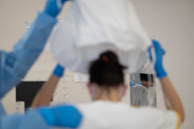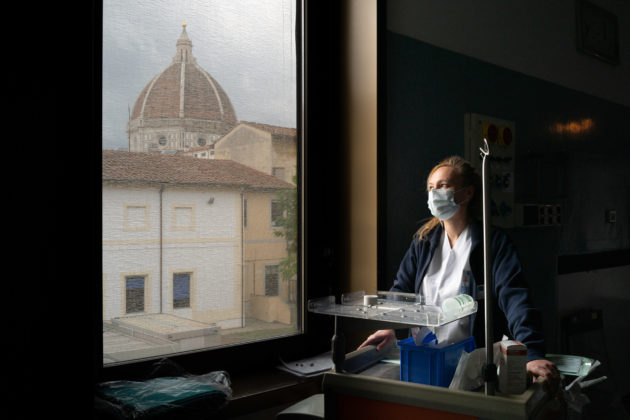 La tragedia della pandemia attraverso gli occhi degli infermieri del più antico ospedale del mondo: Santa Maria Nuova a Firenze. Le ha fissate l’obiettivo di Massimo Sestini, il celebre fotoreporter vincitore del World Press Photo nel 2015, e sono esposte nella mostra “Indispensabili infermieri”, allestita da oggi fino a fine dicembre nel corridoio che si affaccia sul Chiostro della Magnolia, e visitabile, nel rispetto delle norme vigenti, unicamente dai sanitari, dai pazienti e dagli utenti dell’ospedale fondato da Folco Portinari, il banchiere padre di Beatrice, la ‘musa’ di Dante Alighieri. Un reportage in 34 stampe di grandi dimensioni che racconta la tragedia della pandemia con il ritmo della cronaca e con la volontà di restituire una dimensione dell’emergenza coronavirus intima e al tempo stesso corale, in cui il punto focale non è chi soffre ma chi aiuta.