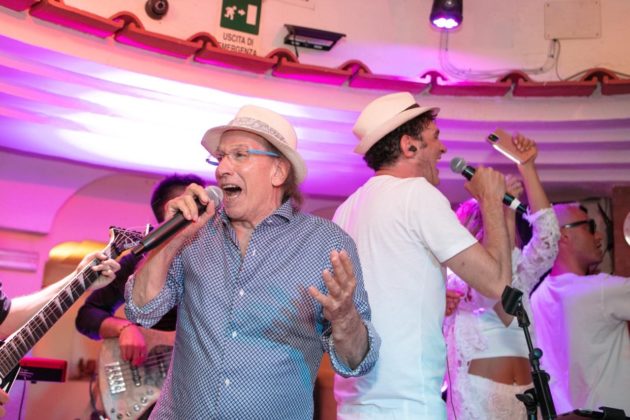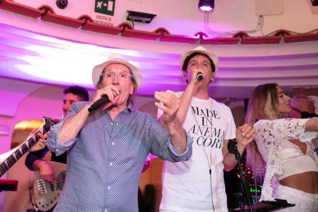 Guido Lembo, l’ugola caprese che ha fatto ballare tarantelle alle celeb di ogni età, è seduto su un simil trono in plastica arancione e lancia da “Anema ‘e core” il suo messaggio di positività: “Siamo aperti tutti i giorni, anche solo per un cliente”. Felicità del duo Albano/Romina è l’ inno di quest’estate e la dedica al figlio Gianluigi, anche lui vocazione irresistibile chansonnier, e auguri per i suoi 42 o 43 anni ( fa finta di non ricordarsi): “Sarà un’estate diversa, ma non per questo meno bella delle altre”. Intanto si canta, si balla e si fa ‘a mossa “mascherati”, tutto rigorosamente a distanza di sicurezza.